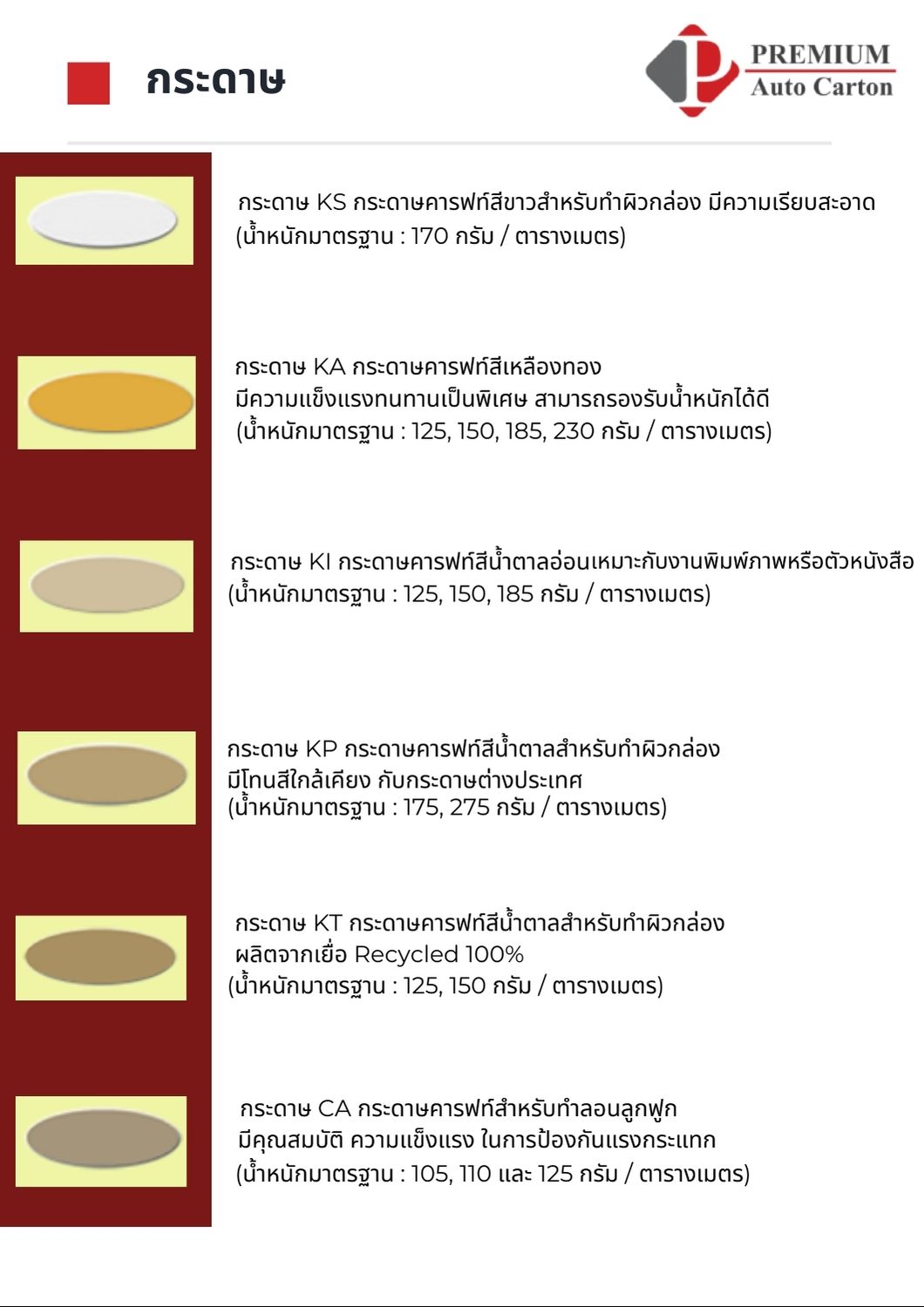 • กระดาษคราฟท์สีขาว W, KS กระดาษคราฟท์สีขาว เหมาะสำหรับกล่องกระดาษที่เน้นการพิมพ์